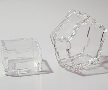 Šis plastikas puikiai tinka pjovimui. Po pjovimo visos briaunos lieka skaidrios ir tvarkingos - palyginimui, po frezavimo CNC staklėmis visos briaunos yra nušlifuotos, tampa matinės, su įbrėžimais ir nepraleidžia šviesos.
