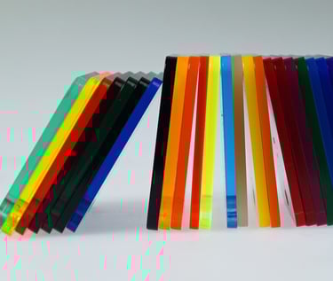 Organinis stiklas gali būti visiškai skaidrus, matinis, baltas, juodas ir dar daugybe kitų spalvų! Taip pat atitinkamai nuo spalvos pasirinkimo jis gali būti nuo 2 iki 25mm storio! Stiklas gali būti dažomas arba klijuotas lipdukais.